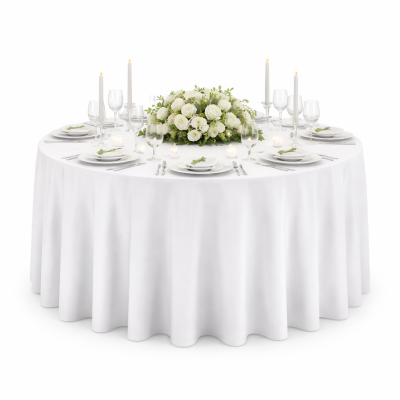 Het tafellaken rond wit – Ø 260 cm is geschikt voor tafels van het formaat 120 cm rond, en biedt zeer ruime overhang ( tot aan de grond ) voor een nette afwerking.